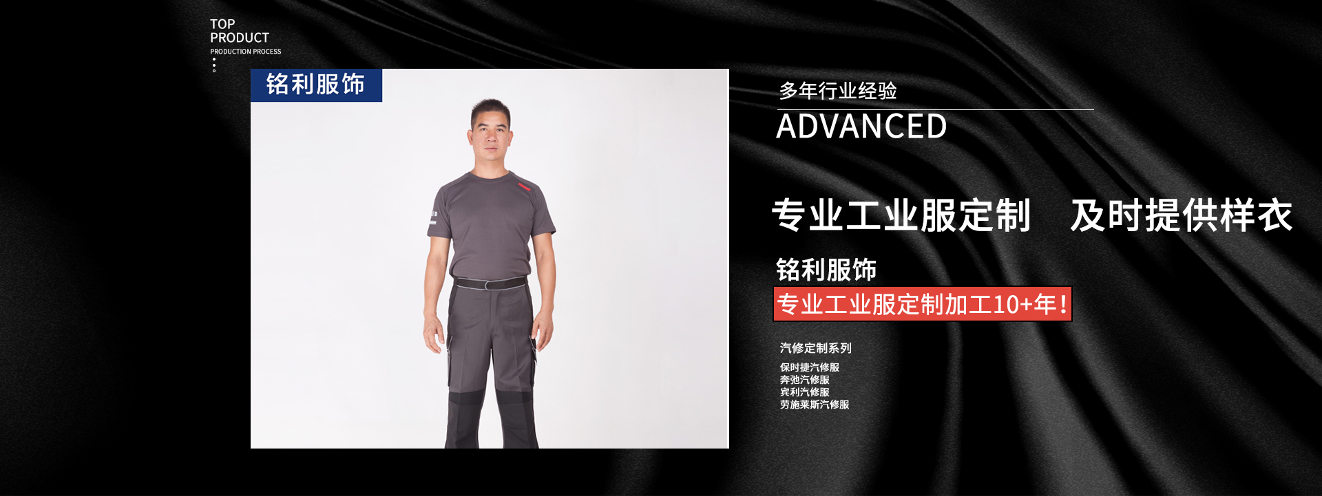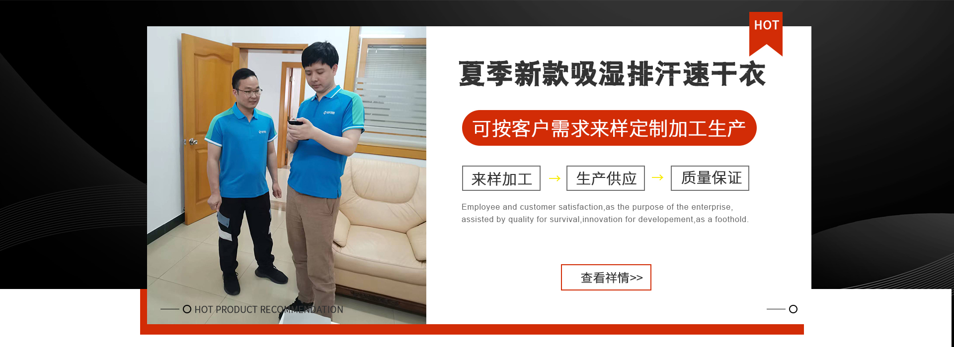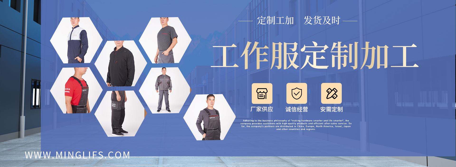 熱門(mén)關(guān)鍵詞:工作服 制服 汽修服 技師服 廠(chǎng)服 保安服 T恤 茄克 襯衫 男女西裝 箱包 帽子 工作鞋 馬夾 沖鋒衣 配飾